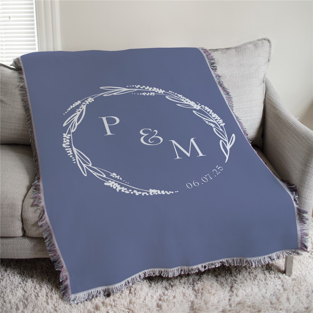 Featuring an elegant laurel wreath design encircling your custom initials and special date, this blankets adds a personal touch to any living space. Choose from 10 soft and stylish background colors to make it truly your own.