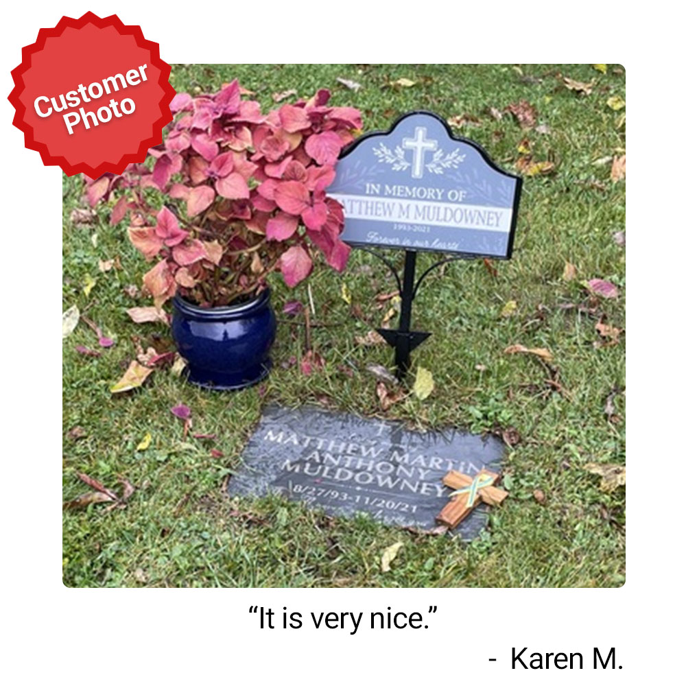 This Personalized Cross With Leaves Memorial Magnetic Sign Set can be placed in your yard in honor of your loved one.