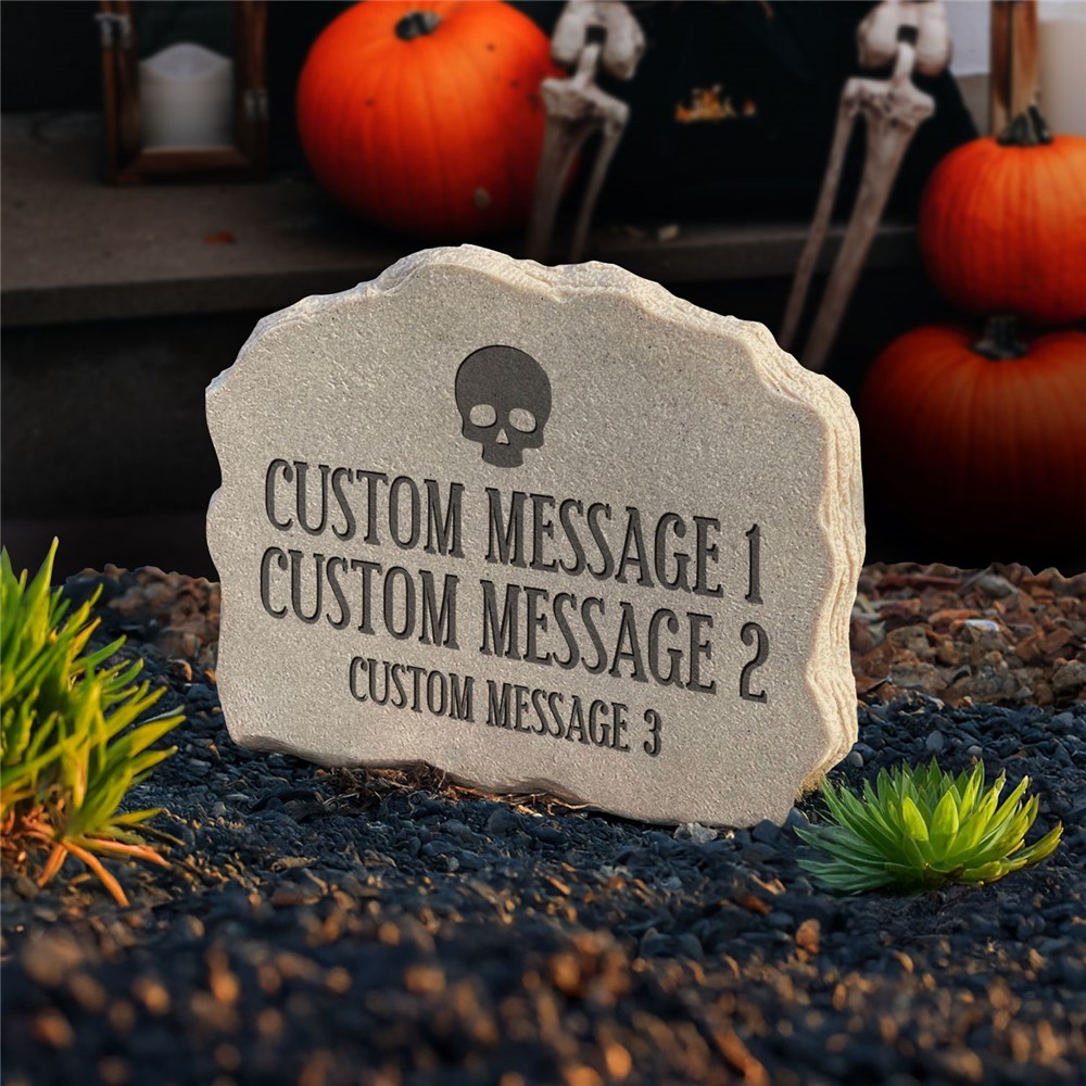 Give the neighbors a laugh this spooky season with this Personalized Custom Message Gravestone Halloween Decor. Pick your favorite creepy icon — skull, bat, or spider — and add three custom message lines to create a funny (or frightening) epitaph. Whether it’s “Barry D. Hatchet”, “Yul B. Next”, or “6 Feet Under”, this tombstone is the perfect way to bring both scares and smiles to your haunted yard display.