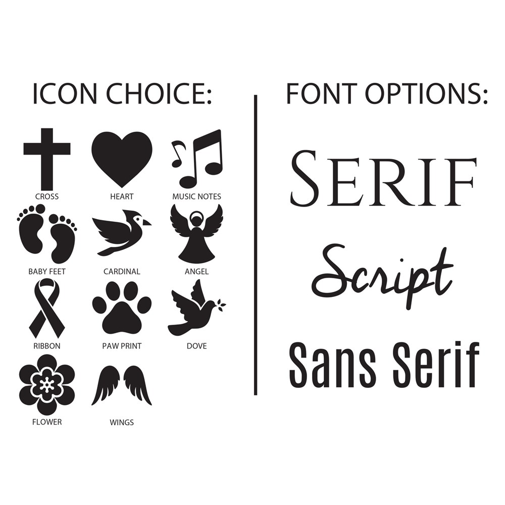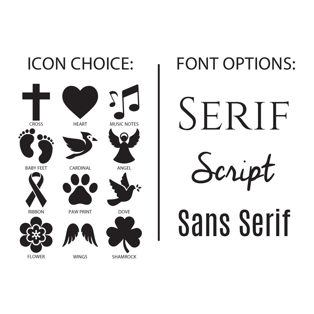 Personalize this stone with your choice of icon, font, text color and 2 custom message lines.