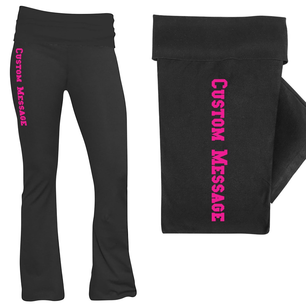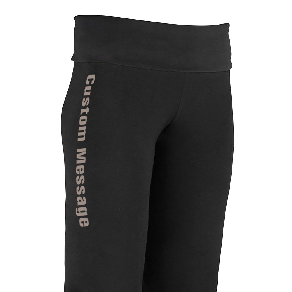 Create a look that’s completely your own with our Personalized Custom Message Yoga Pants! These comfortable, soft, and stretchy pants are designed with a flattering fold-over waistband and feature your custom message printed down the leg. Add any name, phrase, team slogan, or motivational quote—perfect for daily workouts, lounging, dance teams, spirit wear, or unique gifts.