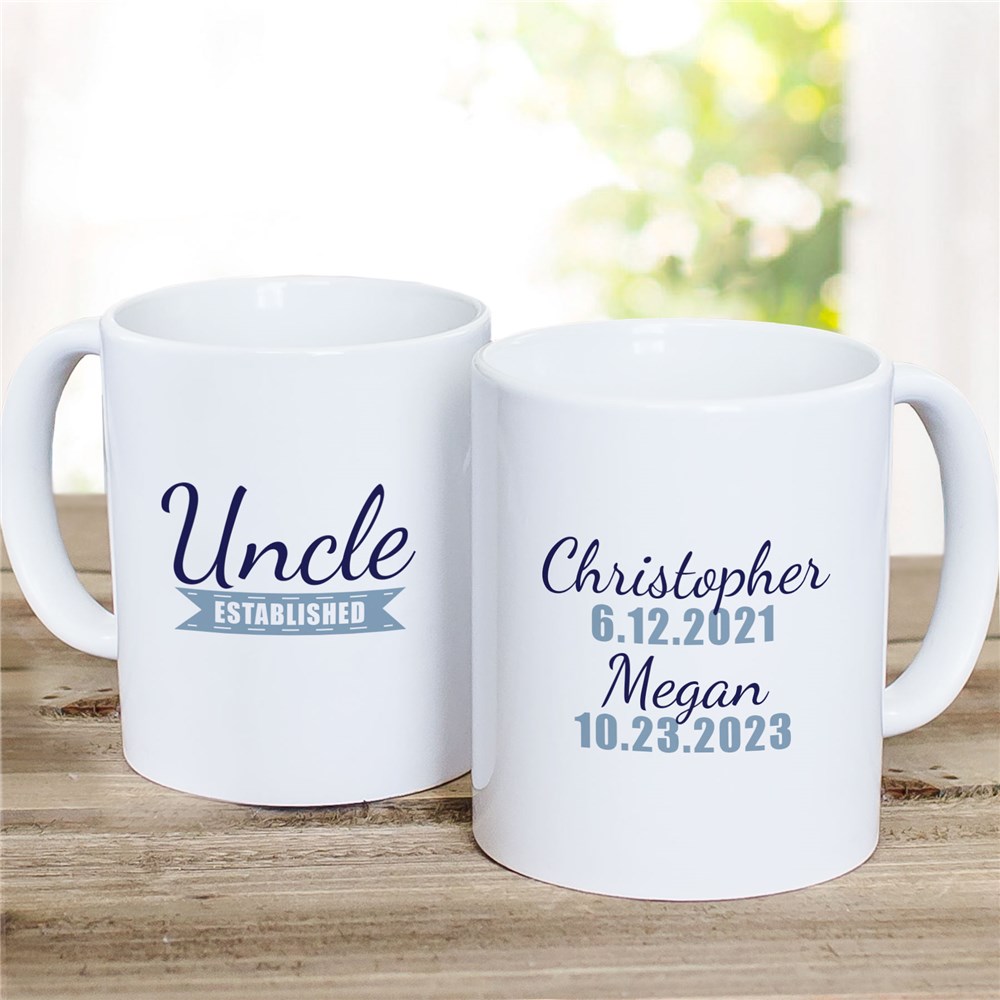 The day he became a father is the best day of his life. Let him remember that moment every morning with our Personalized Dad Established Coffee Mug.