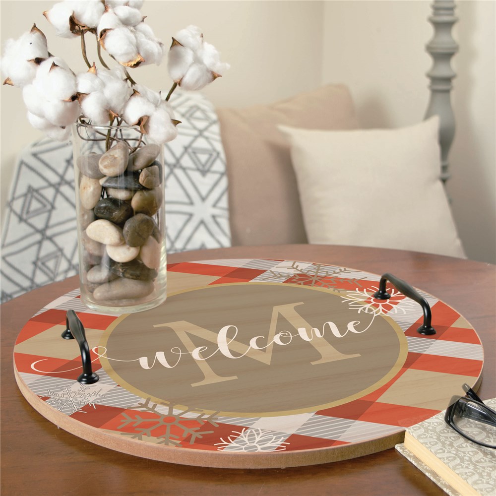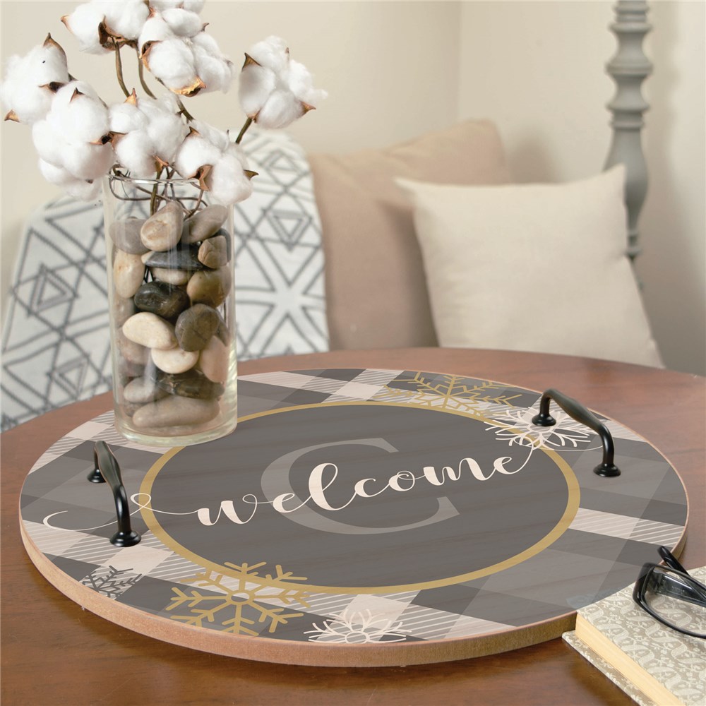 Get festive this holiday season with our Personalized Dashing Through the Snow Round Tray.