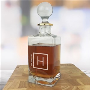 .Engraved American Flag with Custom Message Gold Rim Decanter