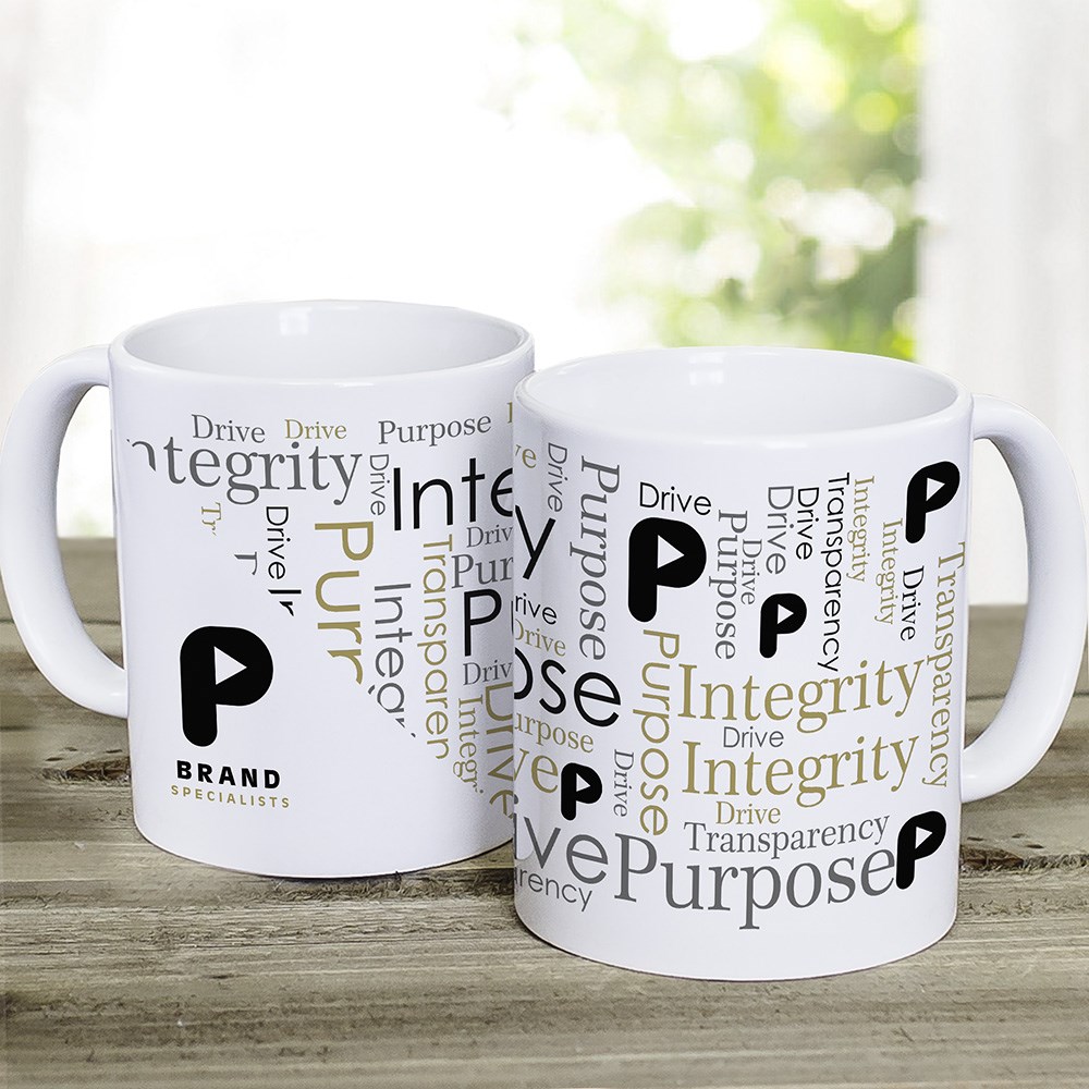 Our Personalized Diagonal Corporate Logo Word-Art Coffee Mug is an excellent idea for a gift for employees!