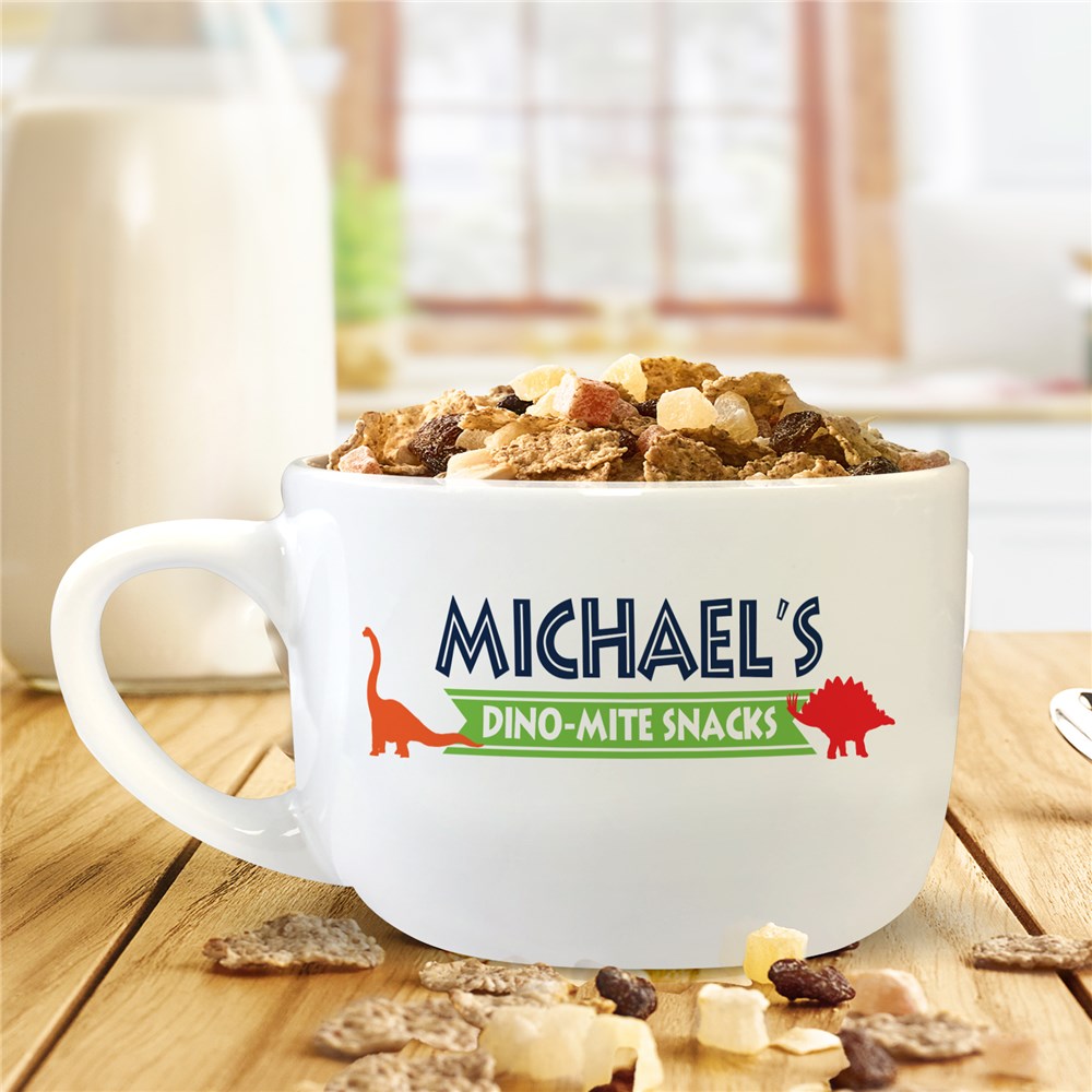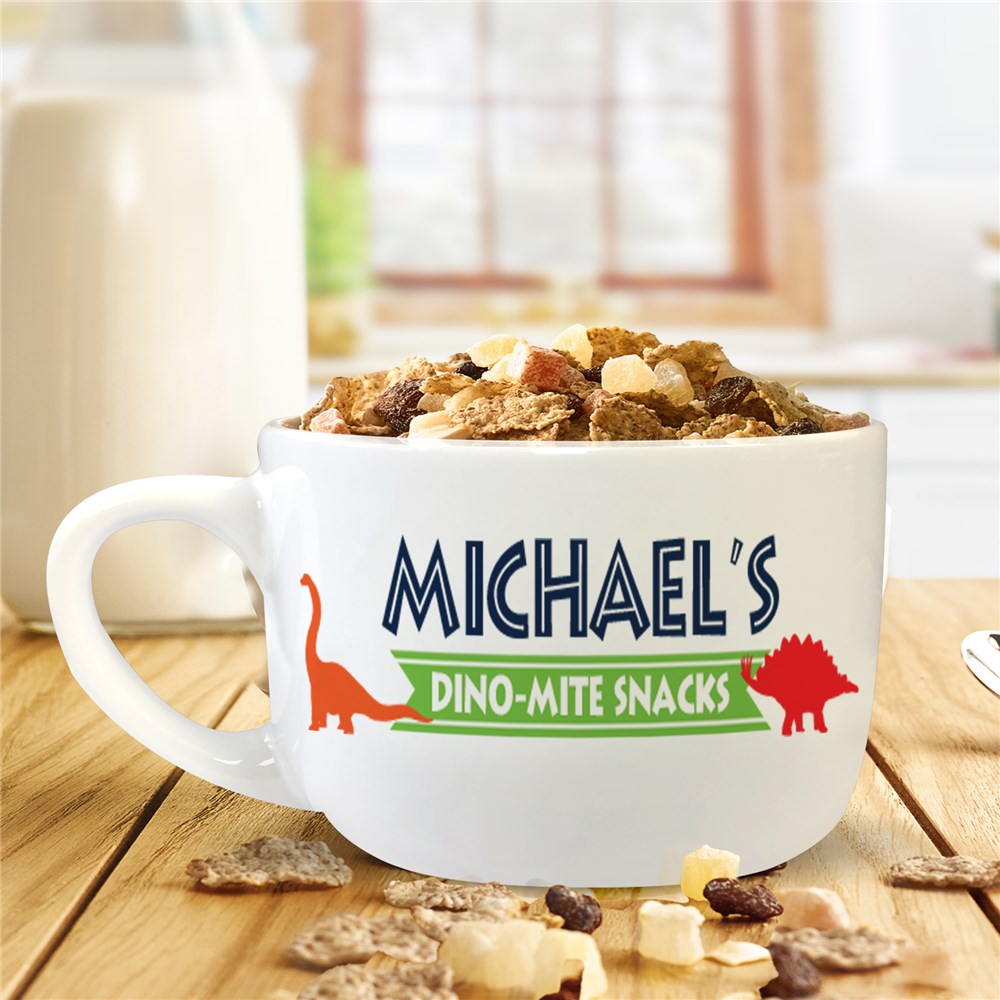 Your youngster will be excited for a yummy snack served in our Personalized Dino-Mite Bowl with Handle.This bowl can be personalized with any name that you choose, making a unique bowl just for them.