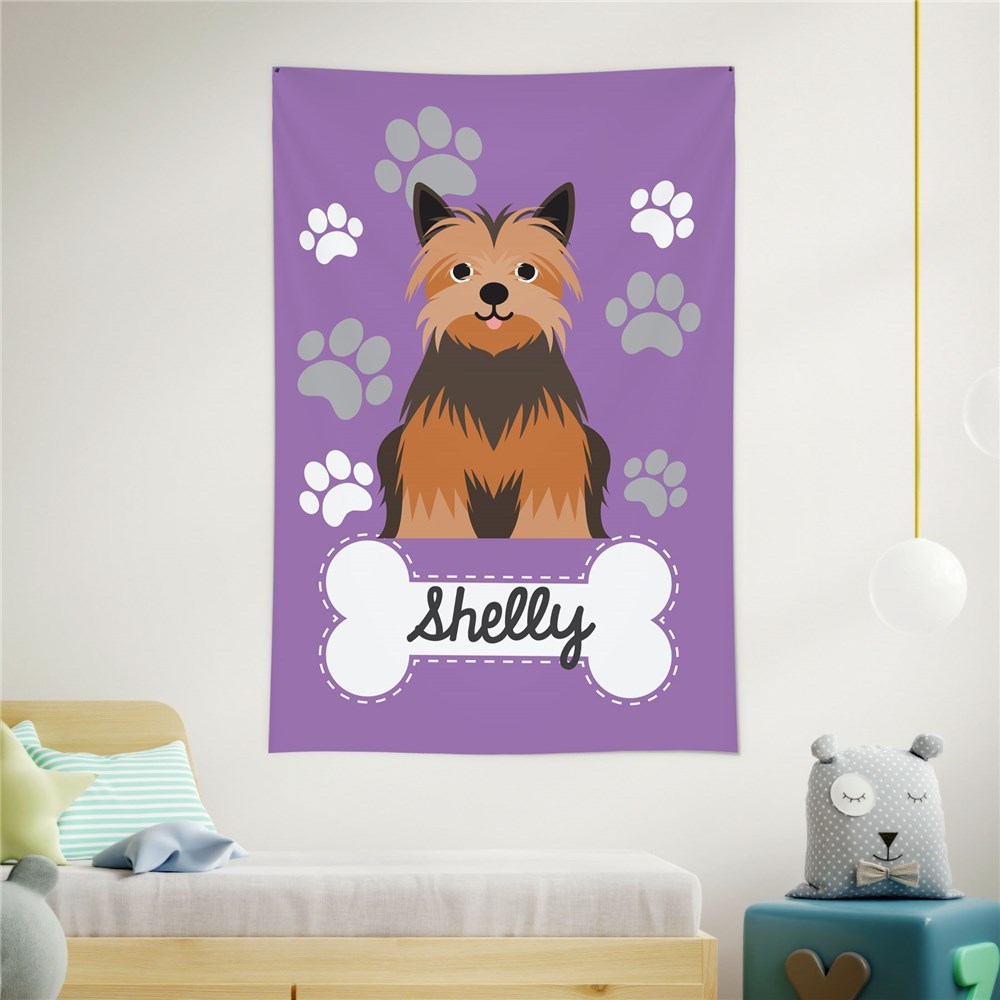 Show off your furry friend’s personality in style with our Personalized Dog Breed Wall Tapestry – the perfect décor piece for any dog lover’s home! This adorable tapestry features a playful paw print design, a cute cartoon illustration of your chosen dog breed, and a large bone with your pet’s name front and center. Celebrate your best friend with a one-of-a-kind piece that’s as special as they are!
