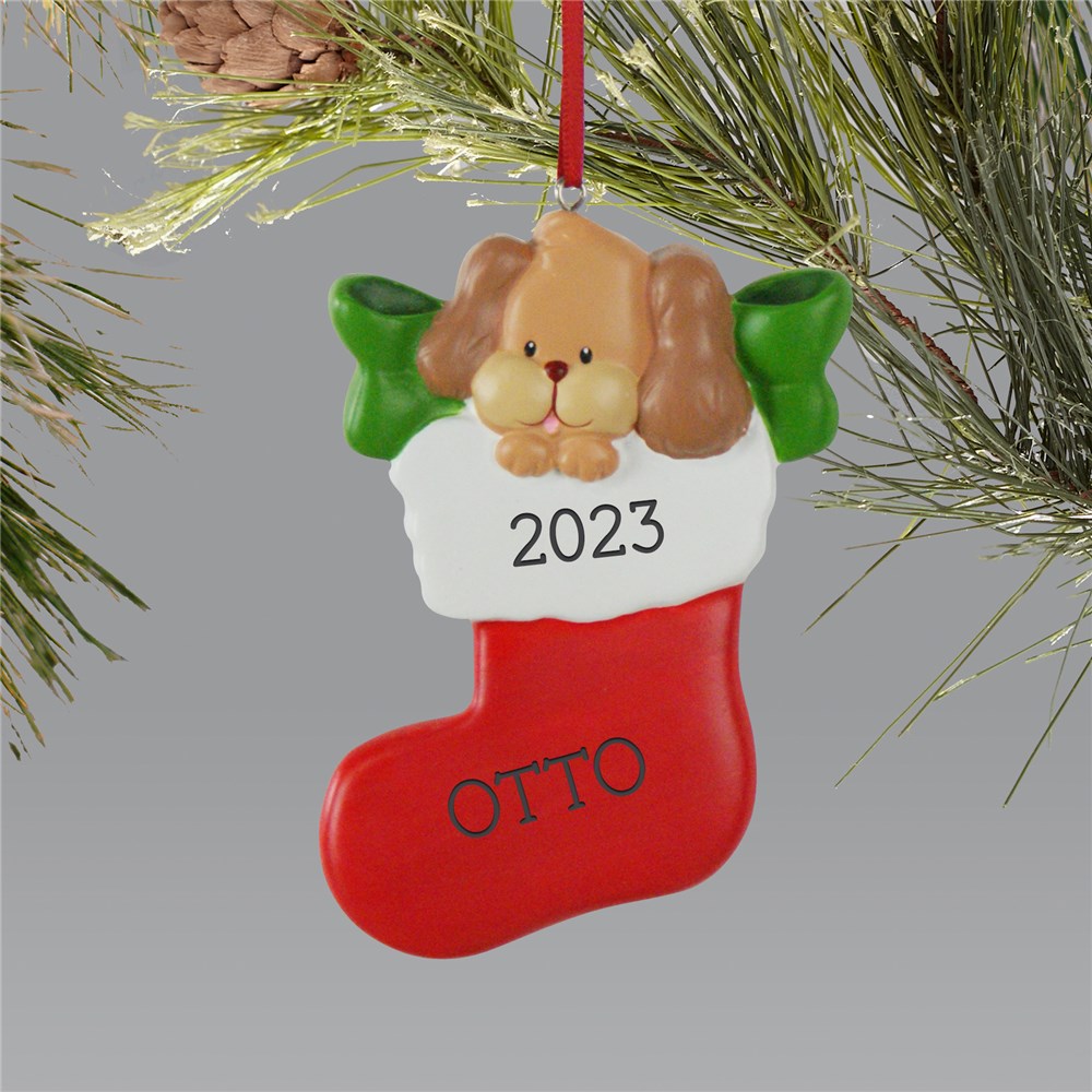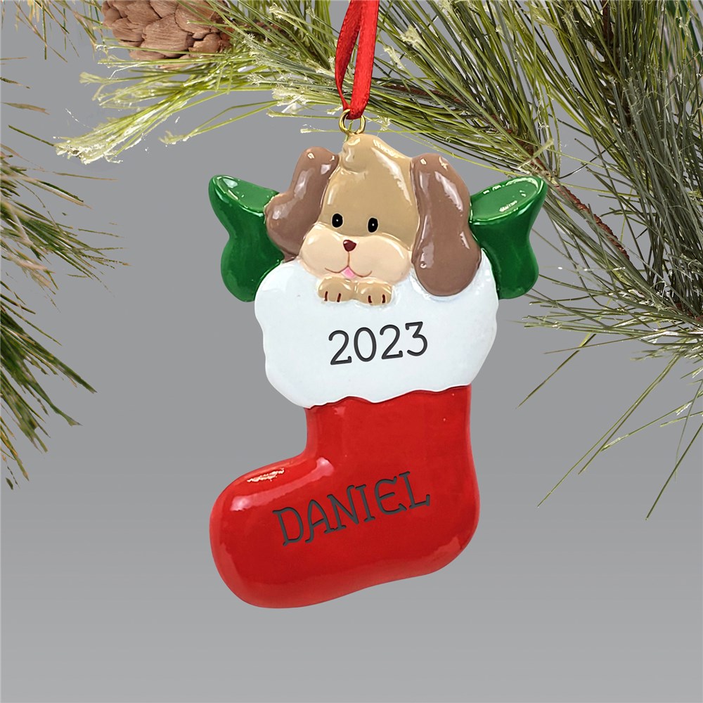 Our Personalized Dog Stocking Christmas Ornament is adorable ornament for your puppy!