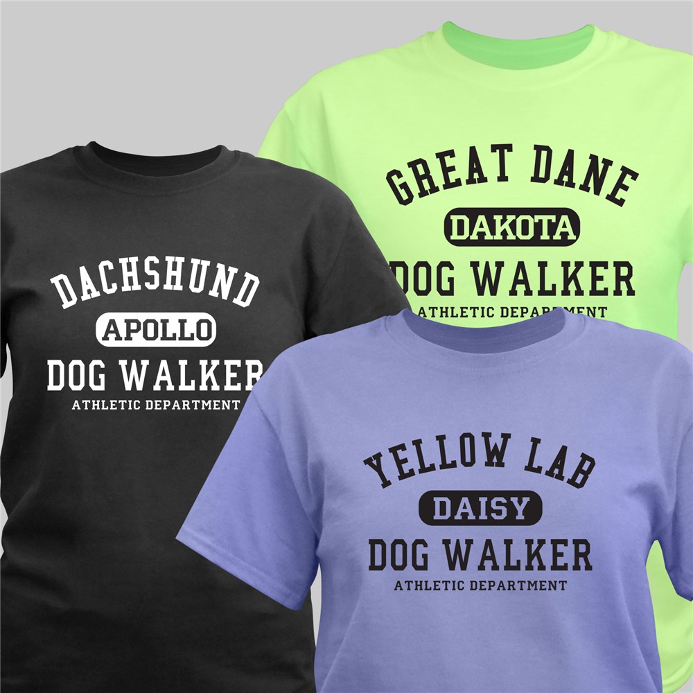 Our Dog Walker Personalized T-Shirts are ideal for the family's designated dog walker! Whether they’re the official dog walker or the dog breed walker, this Pet Lover Personalized Shirt is a wonderful gift idea for any dog owner. Free personalization of any dog breed or Official, any dog name & your favorite text color is included. (ex. Shih Tzu / Buddy / White)