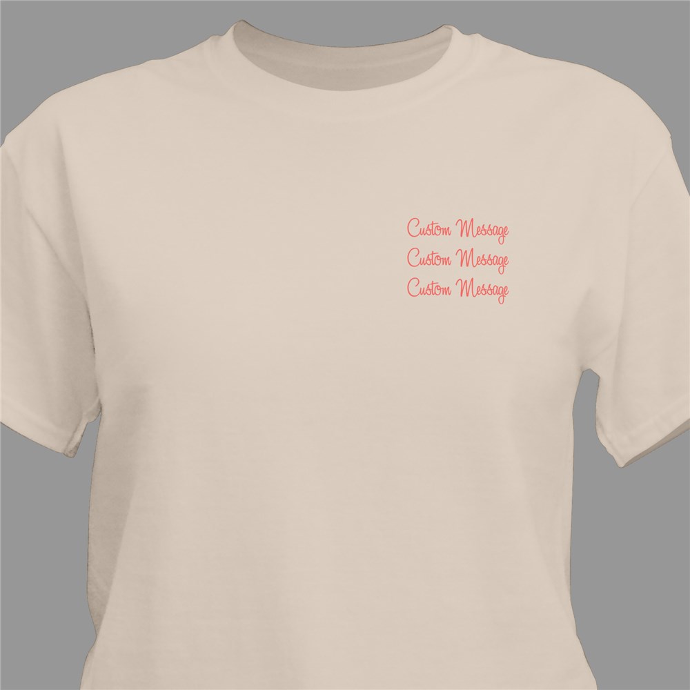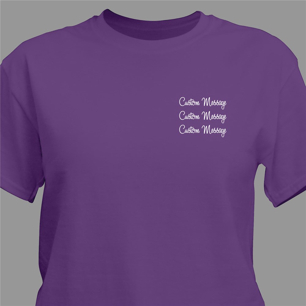 Personalize this shirt on the front left chest with any 3 custom message lines and on the back your favorite photo with a groovy border.
