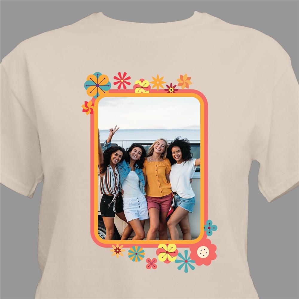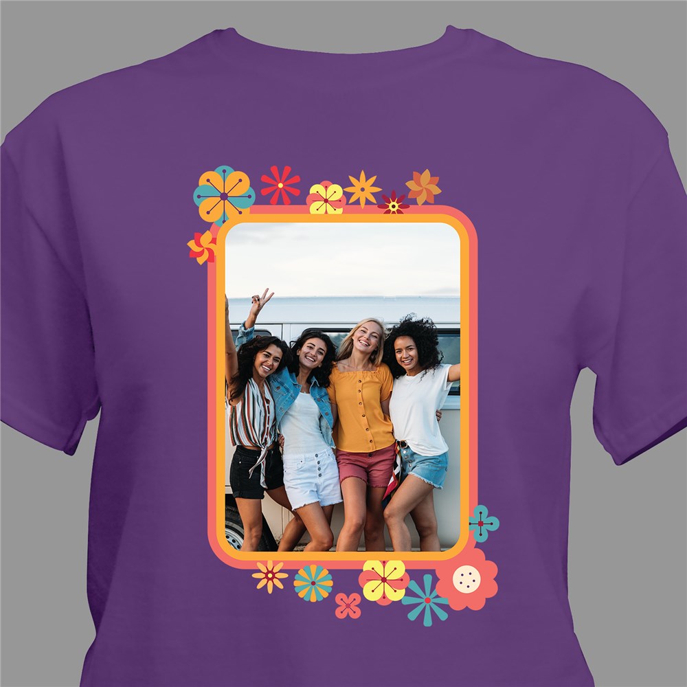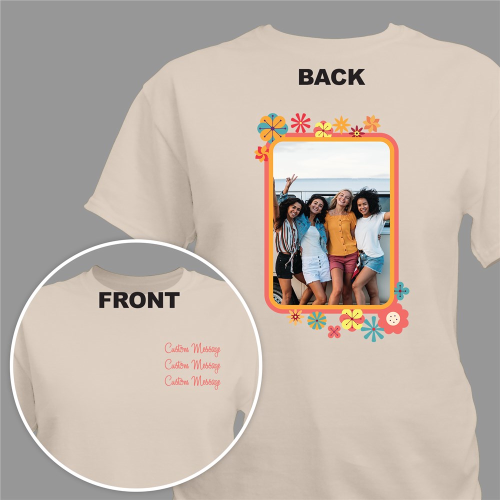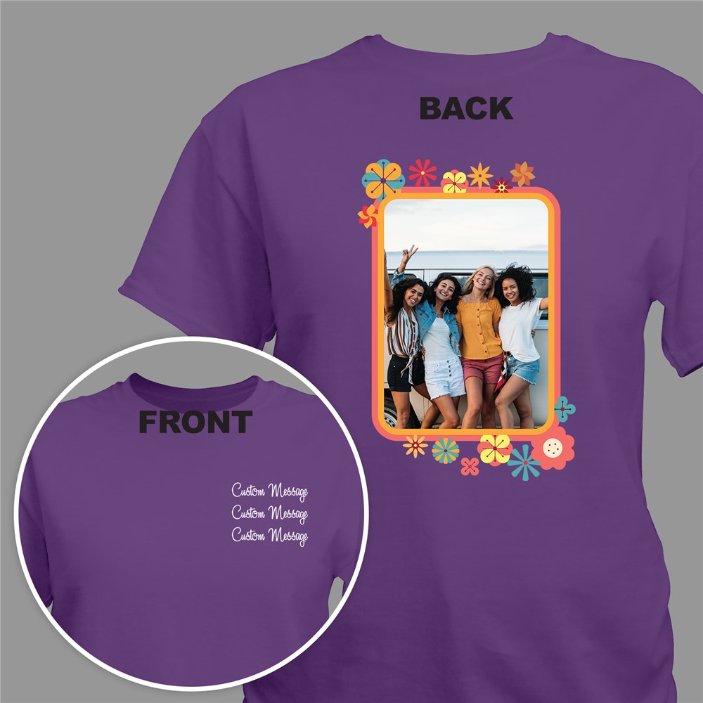 Put your favorite photo on a t-shirt with this Personalized Double-Sided Custom Message With Groovy Photo Border Shirt.