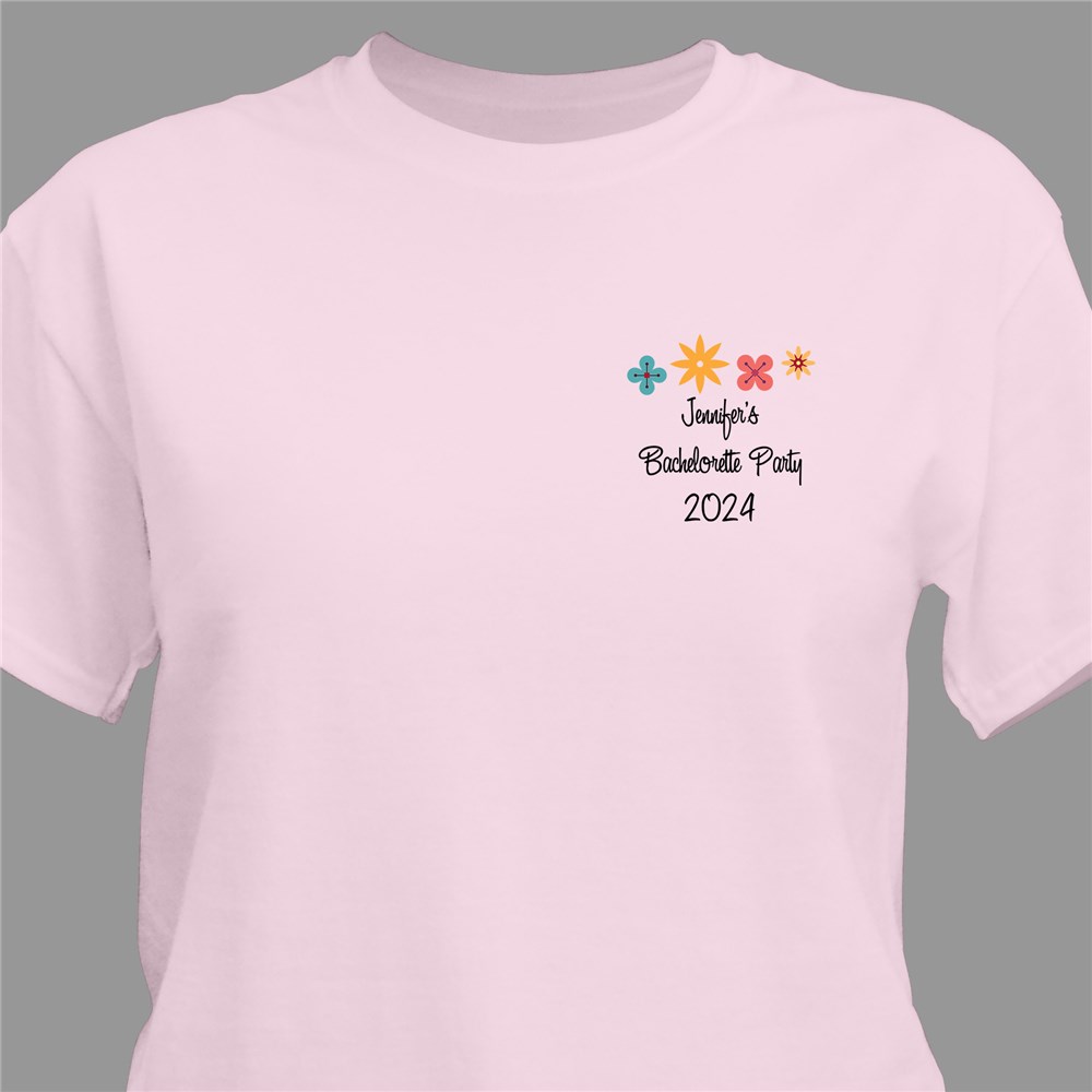 Customize this Personalized Double-Sided Groovy Flowers Custom Message Shirt for your party or event!