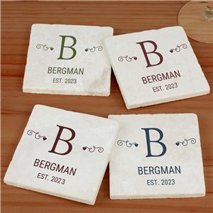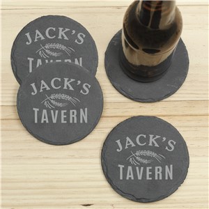 .Engraved Initial And Name Wheat Slate Coaster Set