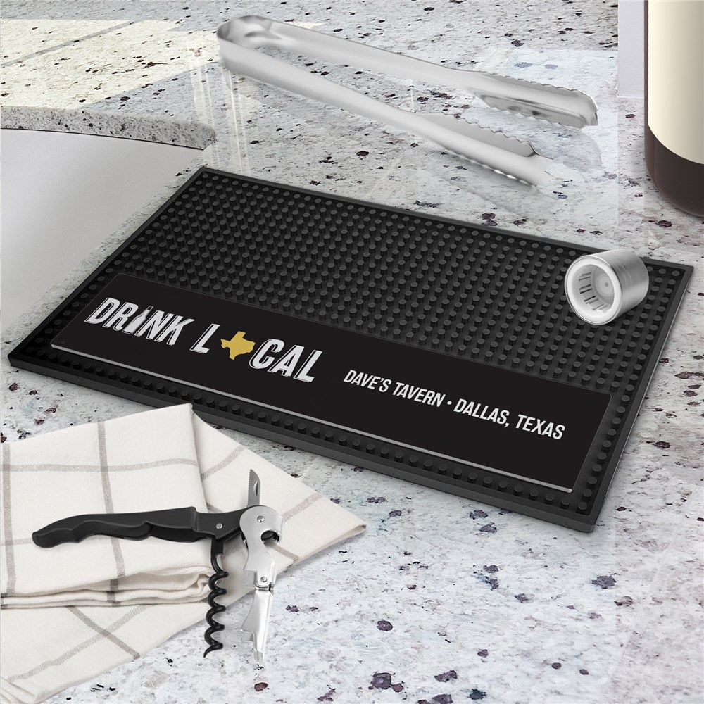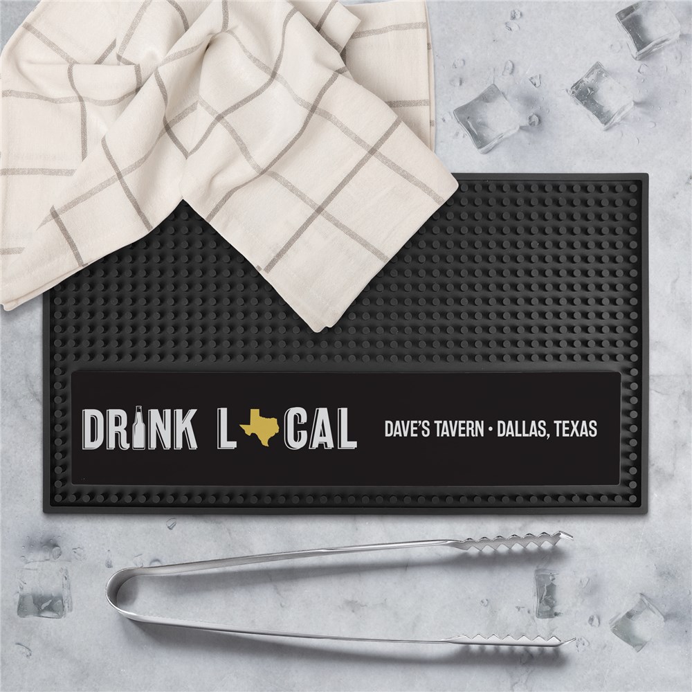 Show off your state pride with this Personalized Drink Local Rectangle Bar Mat. Personalize with your chosen state and custom text to make your home bar uniquely yours. Great for breweries, home brewers, and local beer enthusiasts.