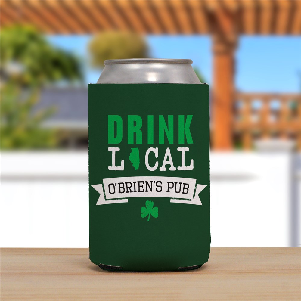 Celebrate your Irish pride and your favorite place to drink with our Personalized Drink Local Shamrock Can Cooler. Give it as a festive St. Patrick's day gift or keep them around your own home bar.