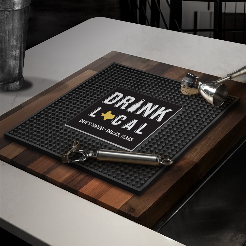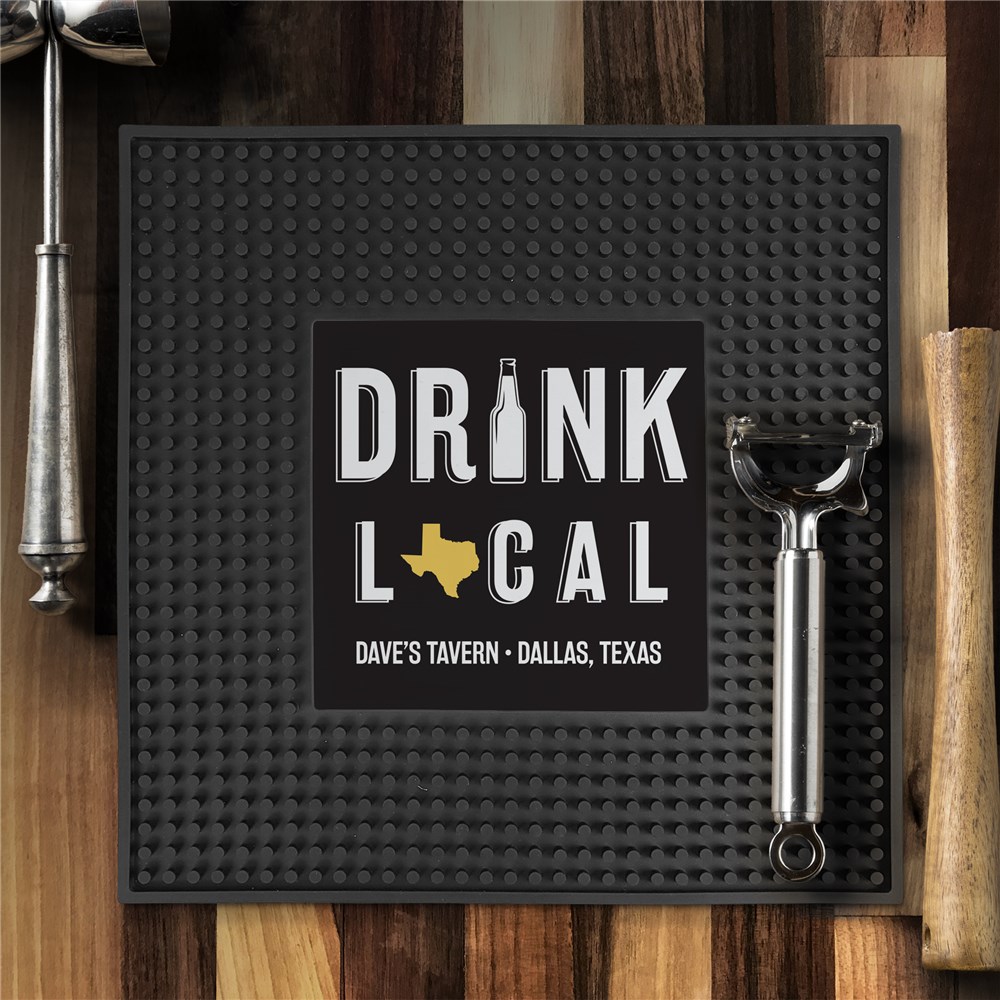 Celebrate your favorite state and support local vibes with this Personalized Drink Local Square Bar Mat. Add your state and a custom message for a fun, personalized bar accessory that’s perfect for beer lovers and hometown pride.