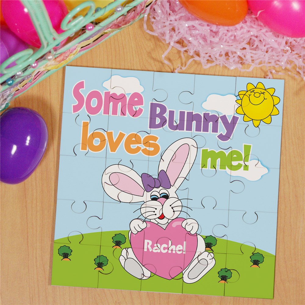 Give your little girl something to be excited about this Easter Sunday! Our personalized Easter bunny jigsaw puzzle for girls will definitely put a smile on her face. She'll have an absolute blast assembling this Easter gift for girls during the day's festivities. Our Easter jigsaw puzzle is available on our premium wooden 25 piece square-shaped puzzle, measuring approx. 6.7"w. Personalize with any name.