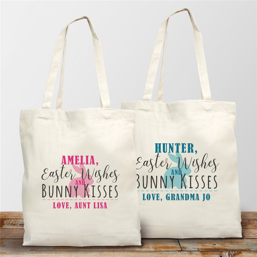 Personalized Easter Wishes Bunny Kisses Tote Bag