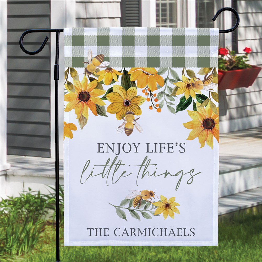 Our Personalized Enjoy Life's Little Things Garden Flag is a great reminder to appreciate things like springtime.