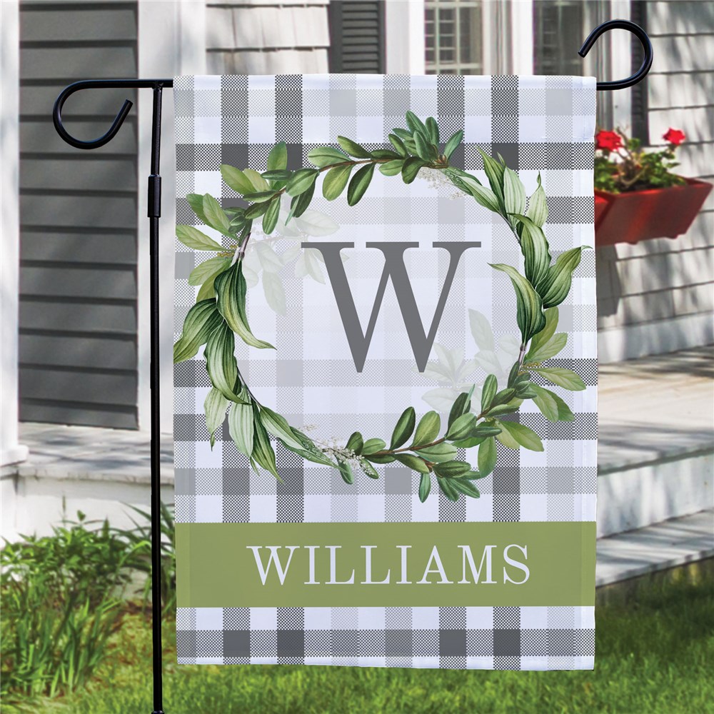 Personalized Eucalyptus Wreath on Plaid Garden FlagPersonalized Eucalyptus Wreath on Plaid Garden FlagPersonalized Eucalyptus Wreath on Plaid Garden Flag