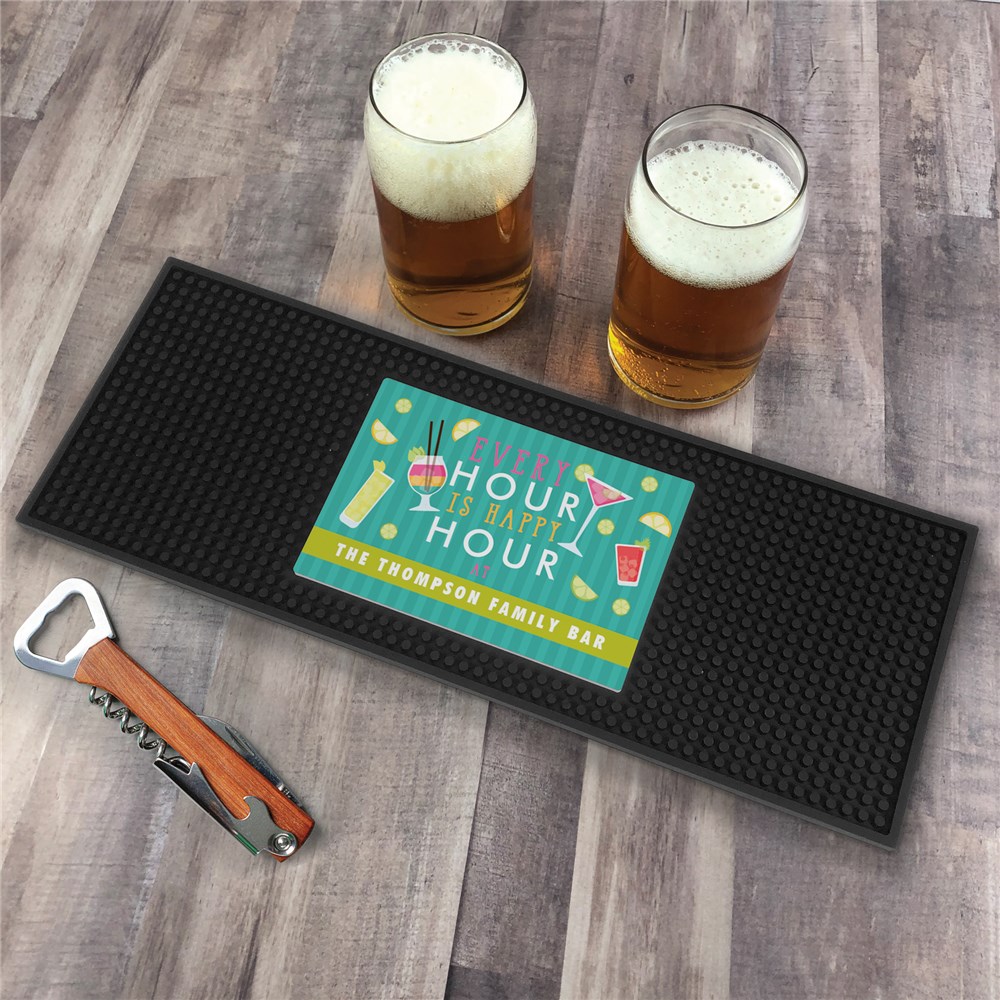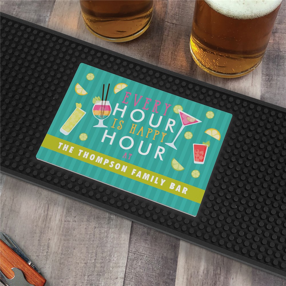 Personalized Every Hour is Happy Hour Bar MatPersonalized Every Hour is Happy Hour Bar Mat