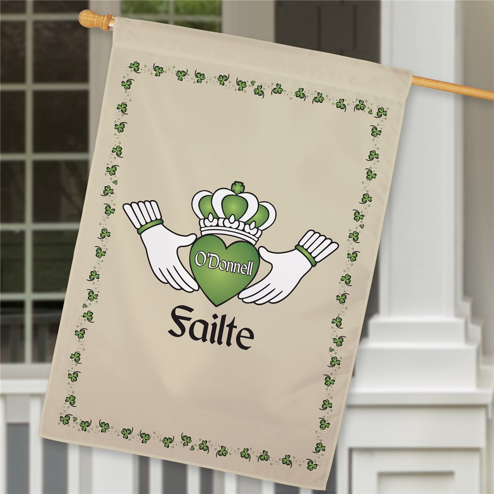 Failte means Welcome. Welcome all of your guests with your own Personalized Failte House Flag, displayed at your front entrance. Irish House Flags are also great to display for St. Patrick's Day. Each House Flag includes FREE Personalization. We will personalize the house flag with any family name. (ex. O'Donnell)