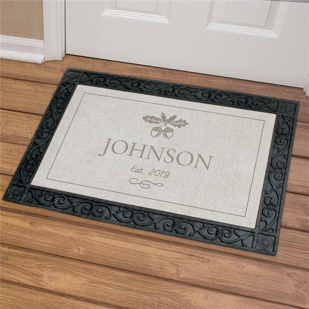 Add a charming welcome to your front entrance this season when you display one of these Fall Personalized Doormats. Featuring an elegant design, these Custom Doormats will give your visitors the warm welcome they deserve. This doormat may be personalized with any family name and established year.