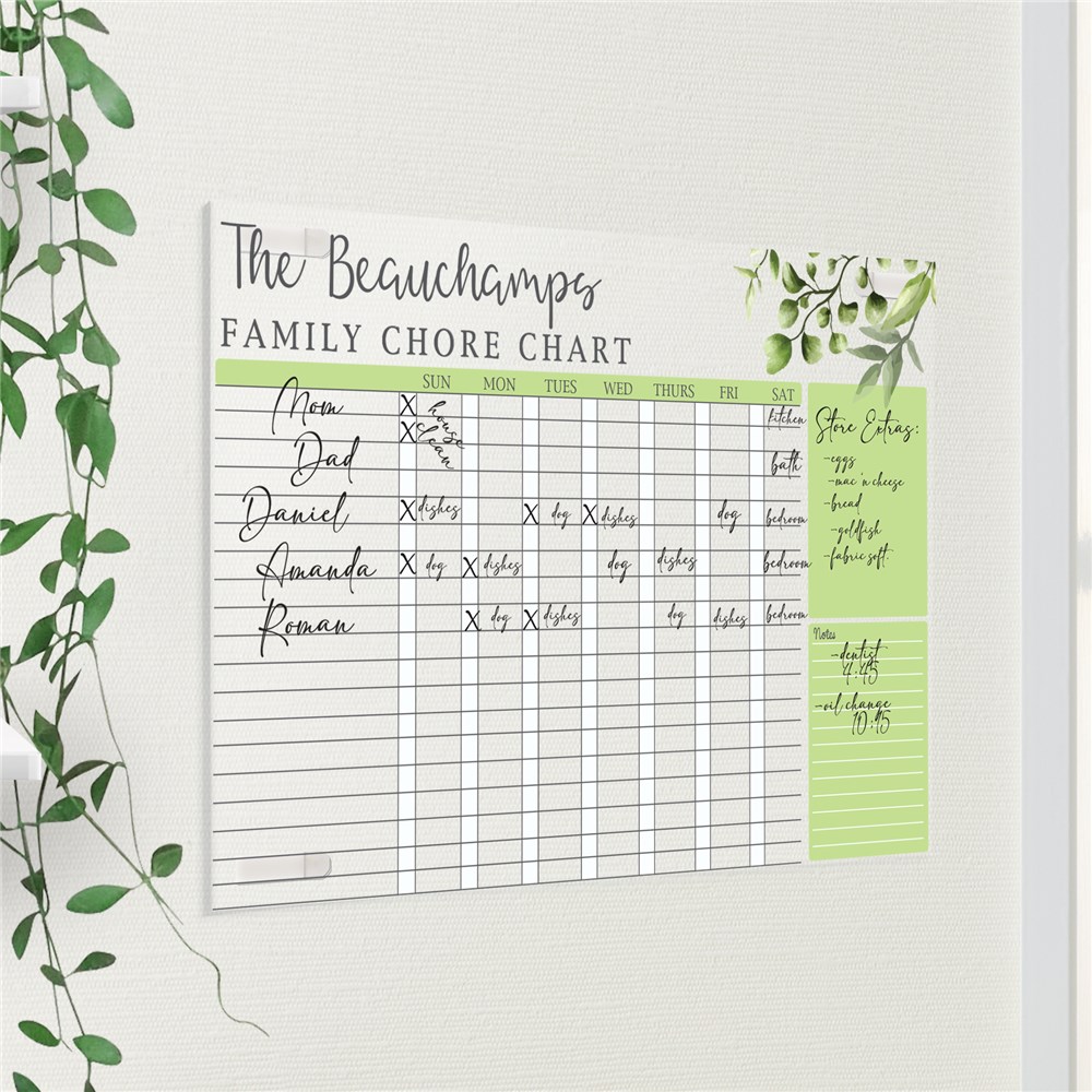 Keep track of each family member's household responsibilities with our Personalized Family Chore Chart with Leaves Acrylic Sign.