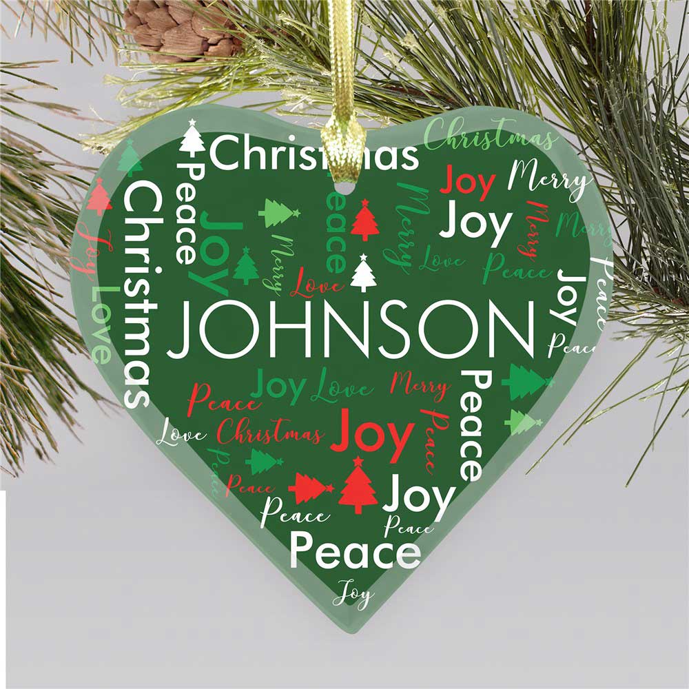 Our Personalized Family Christmas Word Art Heart Glass Ornament will make a perfect addition to any family's Christmas tree.