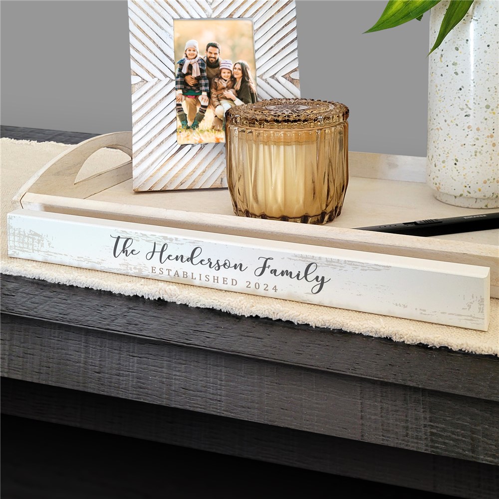 Distressed and personalized, our Personalized Family Established Skinny Rectangle Table Top Sign will add an in style touch to any room in your home.
