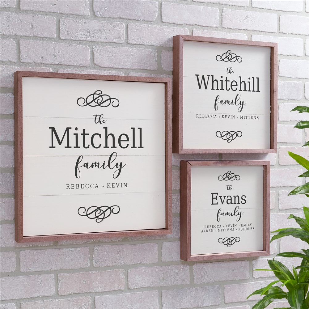 Give a unique gift to a family member with our Personalized Family Filigree Wood Pallet Wall Decor. Our Personalized Rustic Wood Signs may be customized for you with any family name and up to 6 names. Makes an ideal housewarming gift!