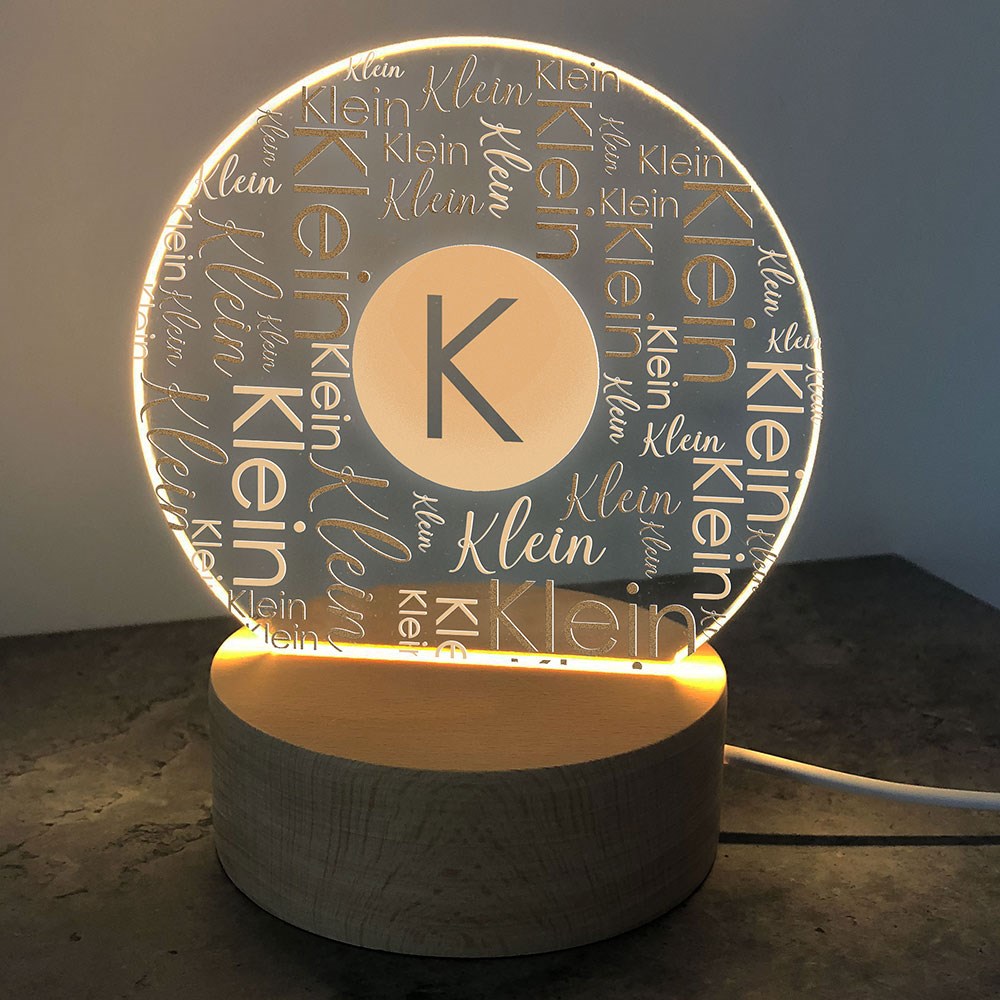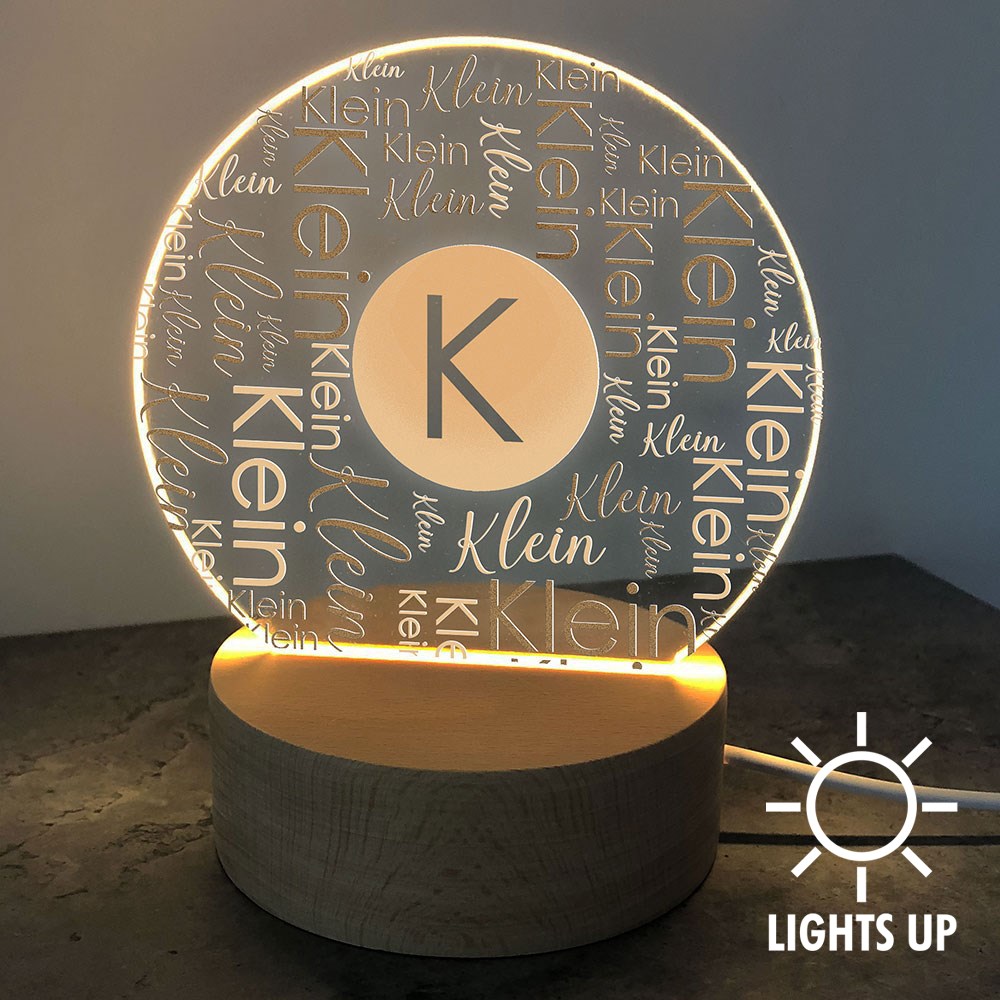 Add some soft mood lighting to your living room at night with our Personalized Family Initial Word Art Round LED Sign.