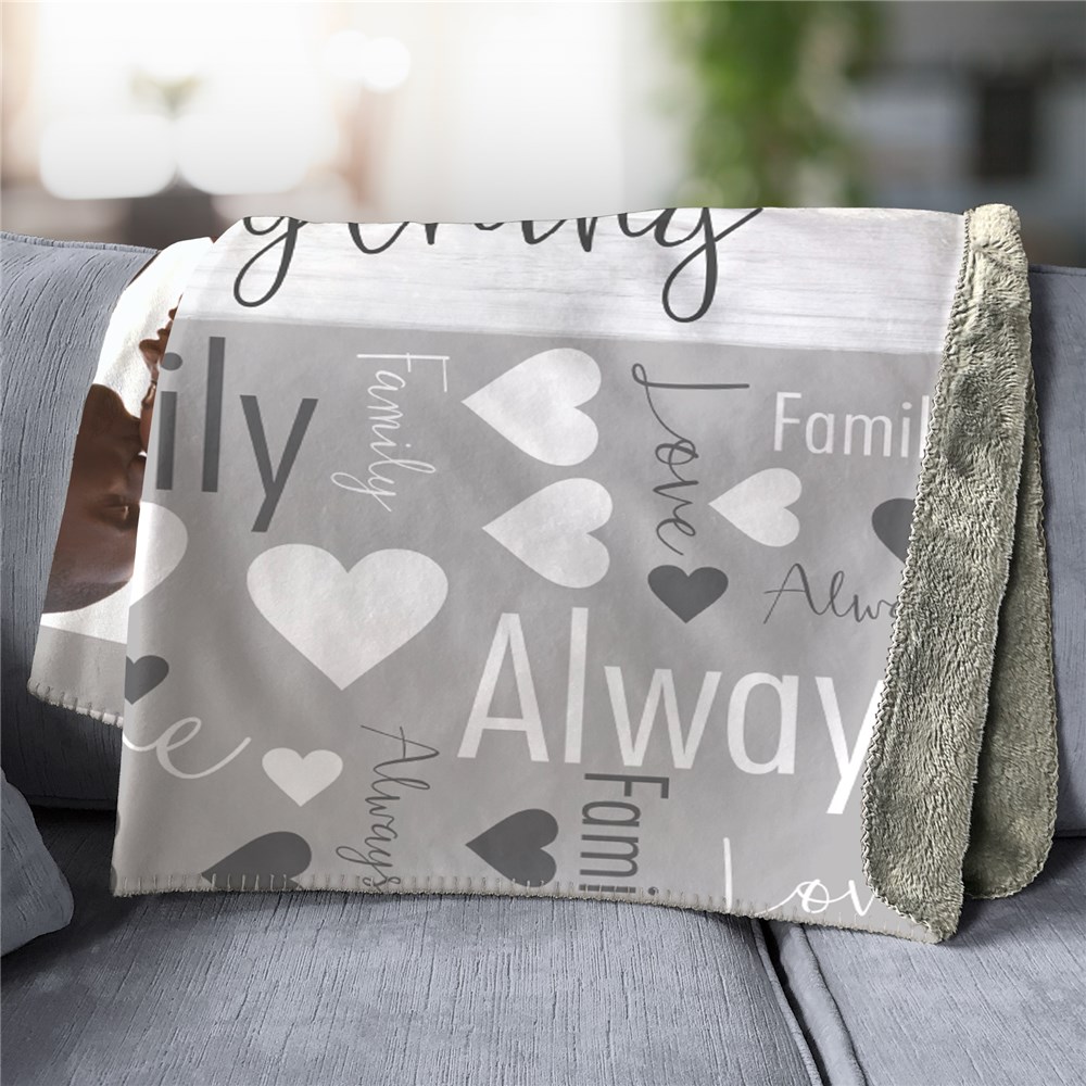 Create this blanket using our exclusive word art tools, just add any names, words, and/or icons of your choosing and upload any 3 photos.