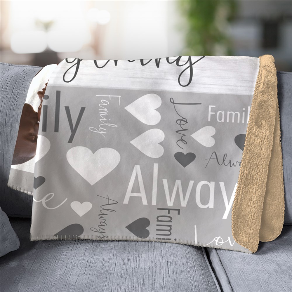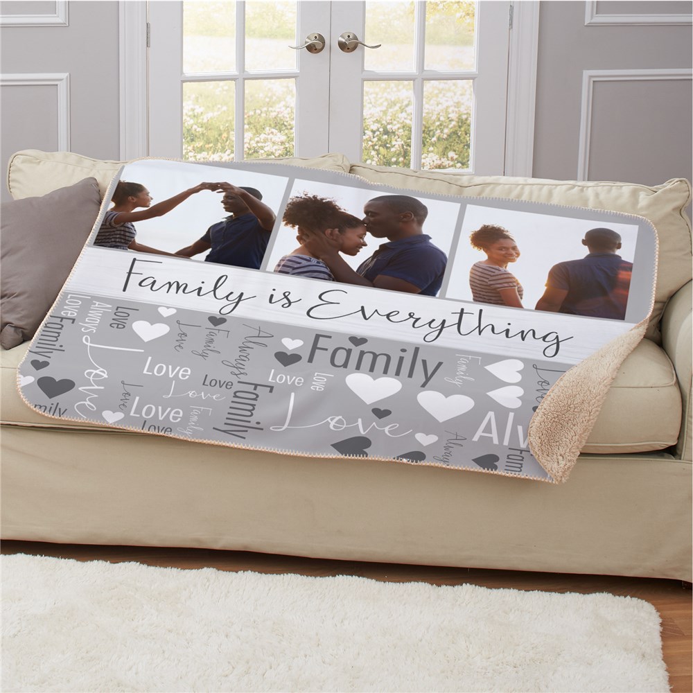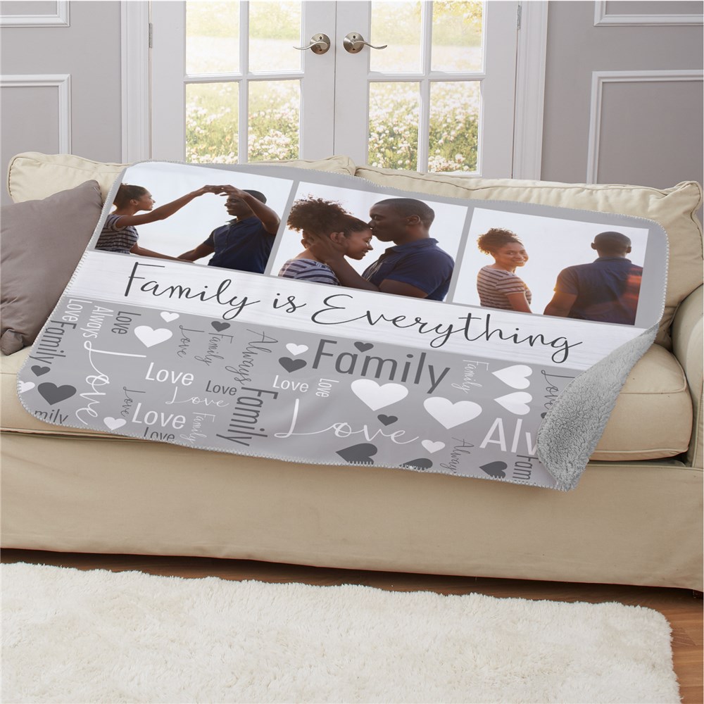 Our Personalized Family Is Everything Word Art 50"x60" Sherpa Blanket is the perfect blanket to cuddle up with your family!