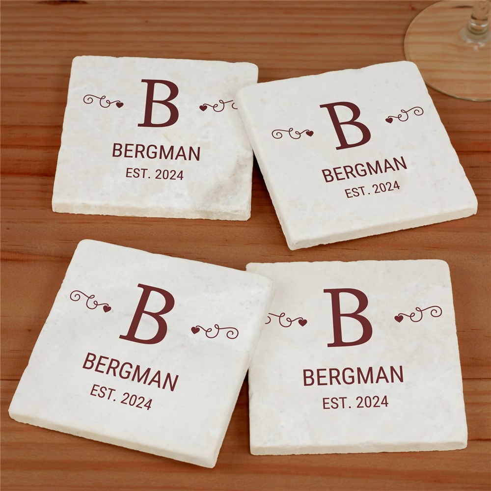 Printed in your favorite design color, any single initial, your family name and any established year, these coasters make a great gift among family and friends.