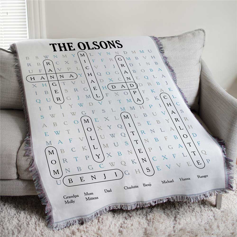 Using our one-of-a-kind tools create this blanket with any family name, and any names or words you'd like to see in the puzzle.
