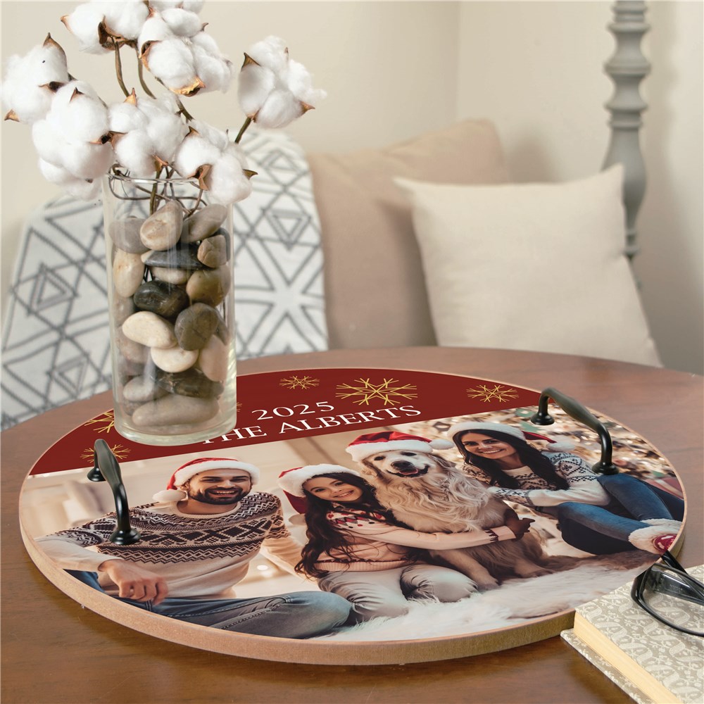 Turn your favorite family photo into a piece of Christmas decor with our Personalized Family Photo Round Tray.