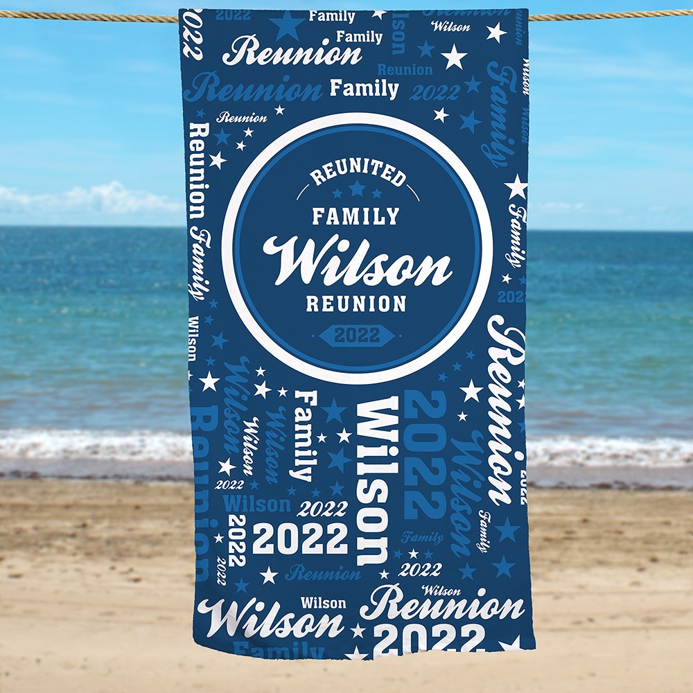 Invite the whole family to a pool party and make sure everyone gets one of our Personalized Family Reunion Word Art Beach Towels.