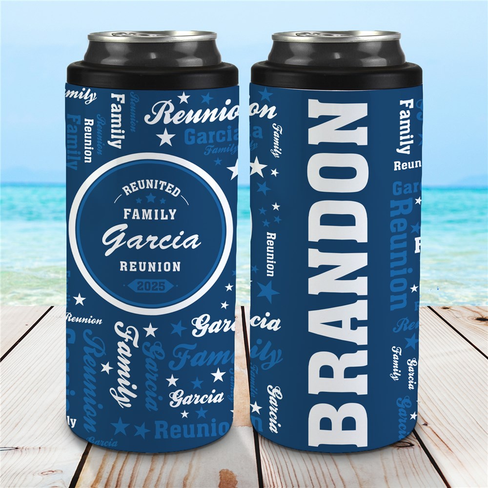 Keep everyone's beverages cool at your summer family reunion with our Personalized Family Reunion Word Art Slim Can Cooler.