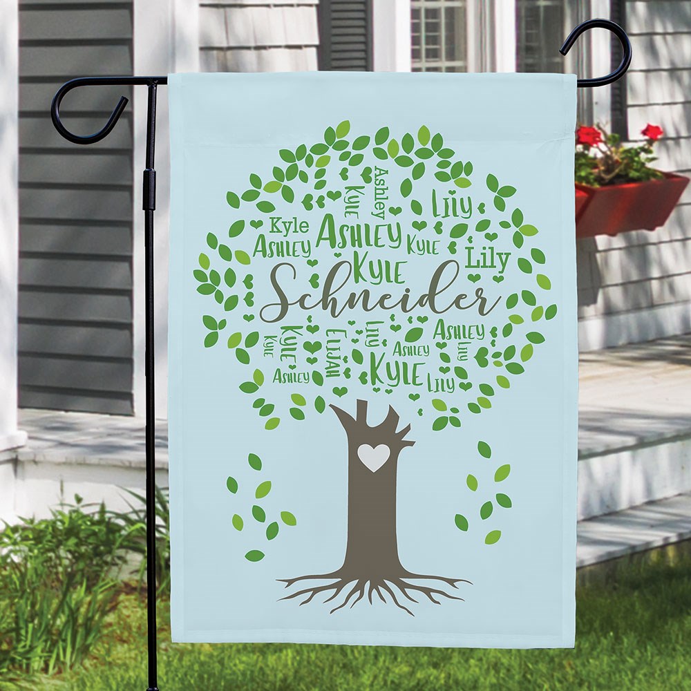 Display our Personalized Family Tree Word Art Garden Flag in your yard this summer to show all the people that make up your family tree!