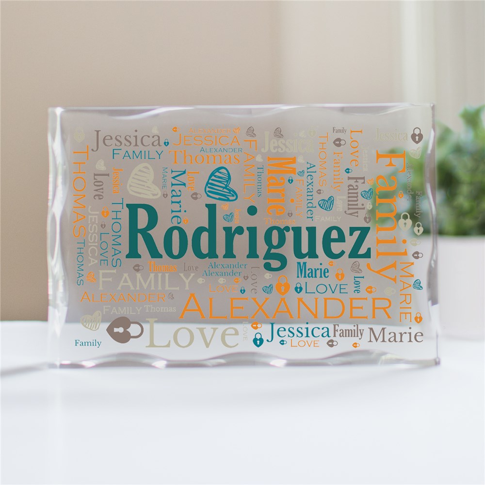Our Personalized Family Word Art Scalloped Edge Acrylic Keepsake will make a great housewarming gift for any family.Using our word art tool, personalize with any names you choose.
