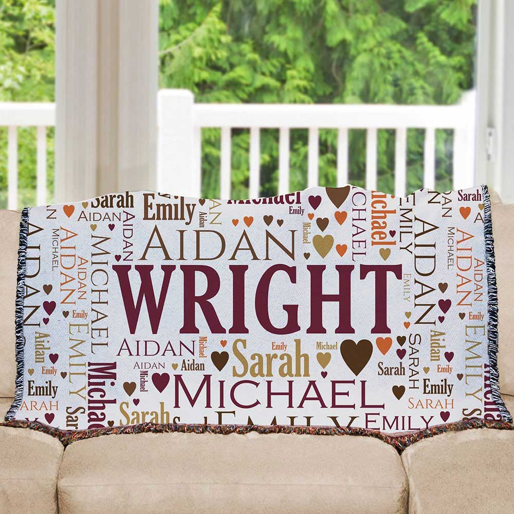 Create a throw to display in your family home that shows the love you all have for one another! This unique tapestry throw will be personalized to your family using our exclusive word art tool. Put family member's names in to create a design that is completely unique and customized to your home. It also makes for the perfect house warming gift! The Word-Art design will run off of the edge of the throw.