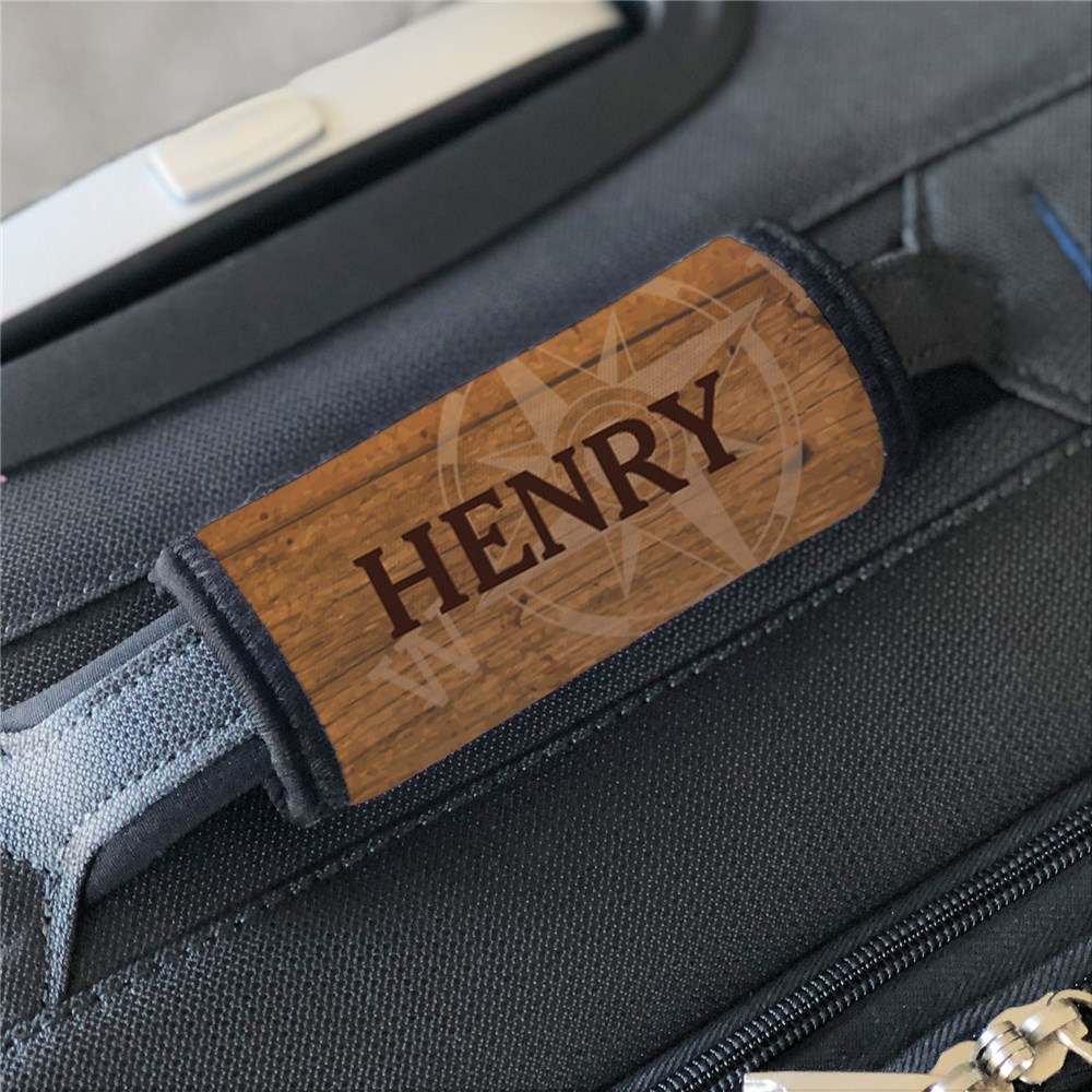 Easily identify and roll your luggage with our Personalized Faux Wood Grain Compass Luggage Grip.