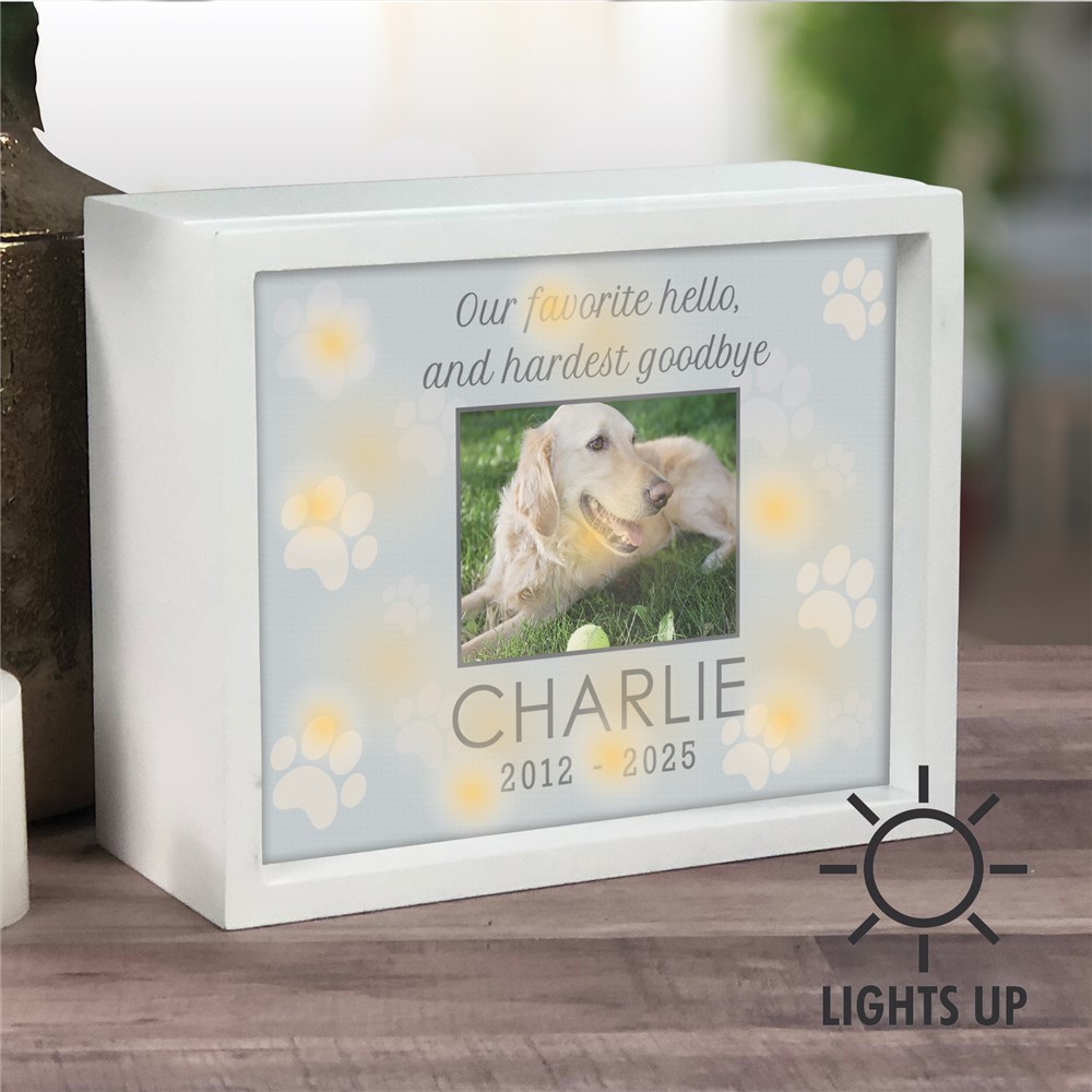 Honor the loyal companion who left pawprints on your heart with our Personalized Favorite Hello Hardest Goodbye LED Shadow Box.