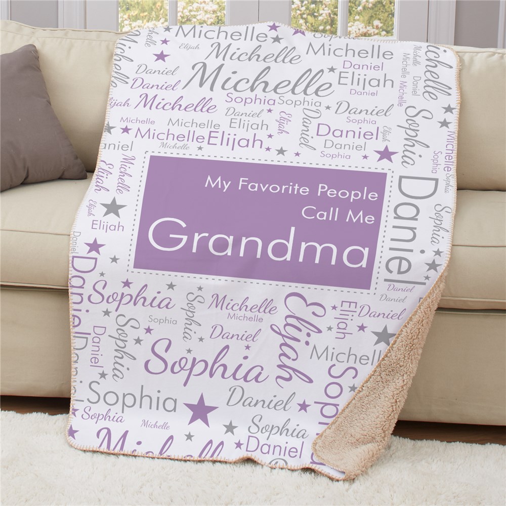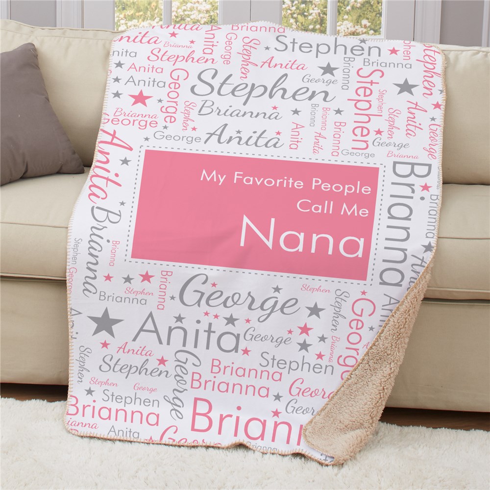 She'll love showing off all her favorite people when she snuggles up in her Personalized Favorite People Call Me Word-Art Sherpa Throw.