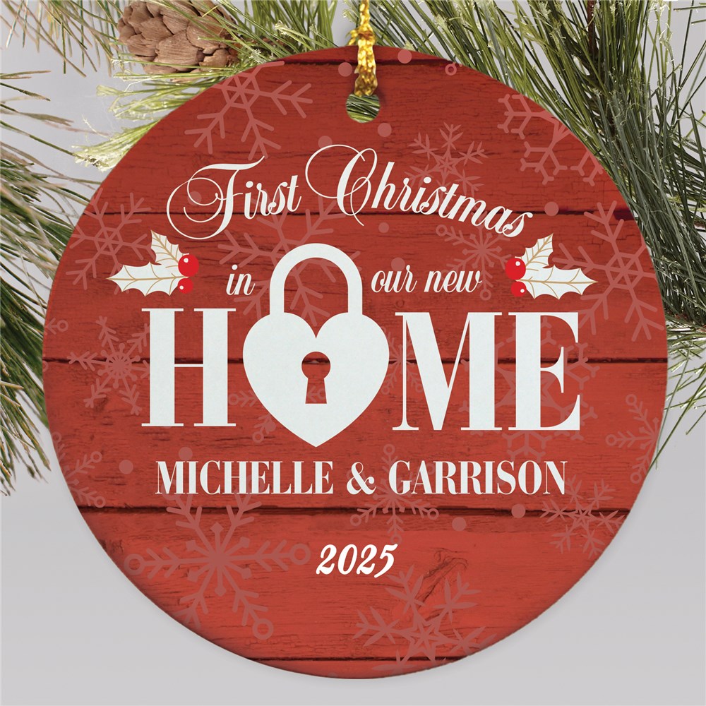 A couple's first home is something that should always be remembered! With so many special memories to make, this home also deserves a unique ornament as a way to always keep it in your memory even after you've moved away. You can do exactly that with our lovely personalized ceramic First Christmas in Our New Home Ornament.