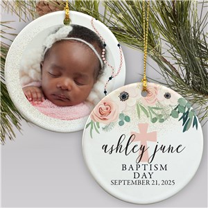 .Personalized Floral Glitter Cross Acrylic Keepsake