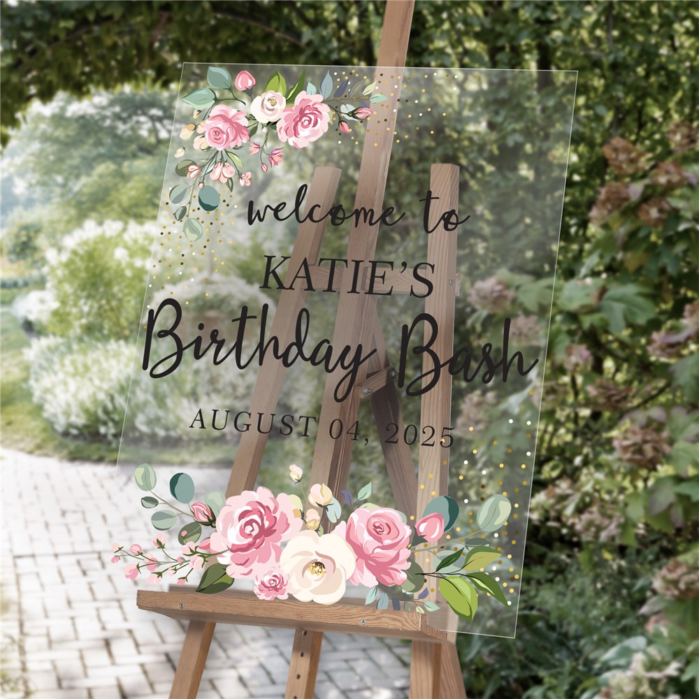 Celebrate this special day with a huge party using our Personalized Floral Acrylic Sign to welcome guests.