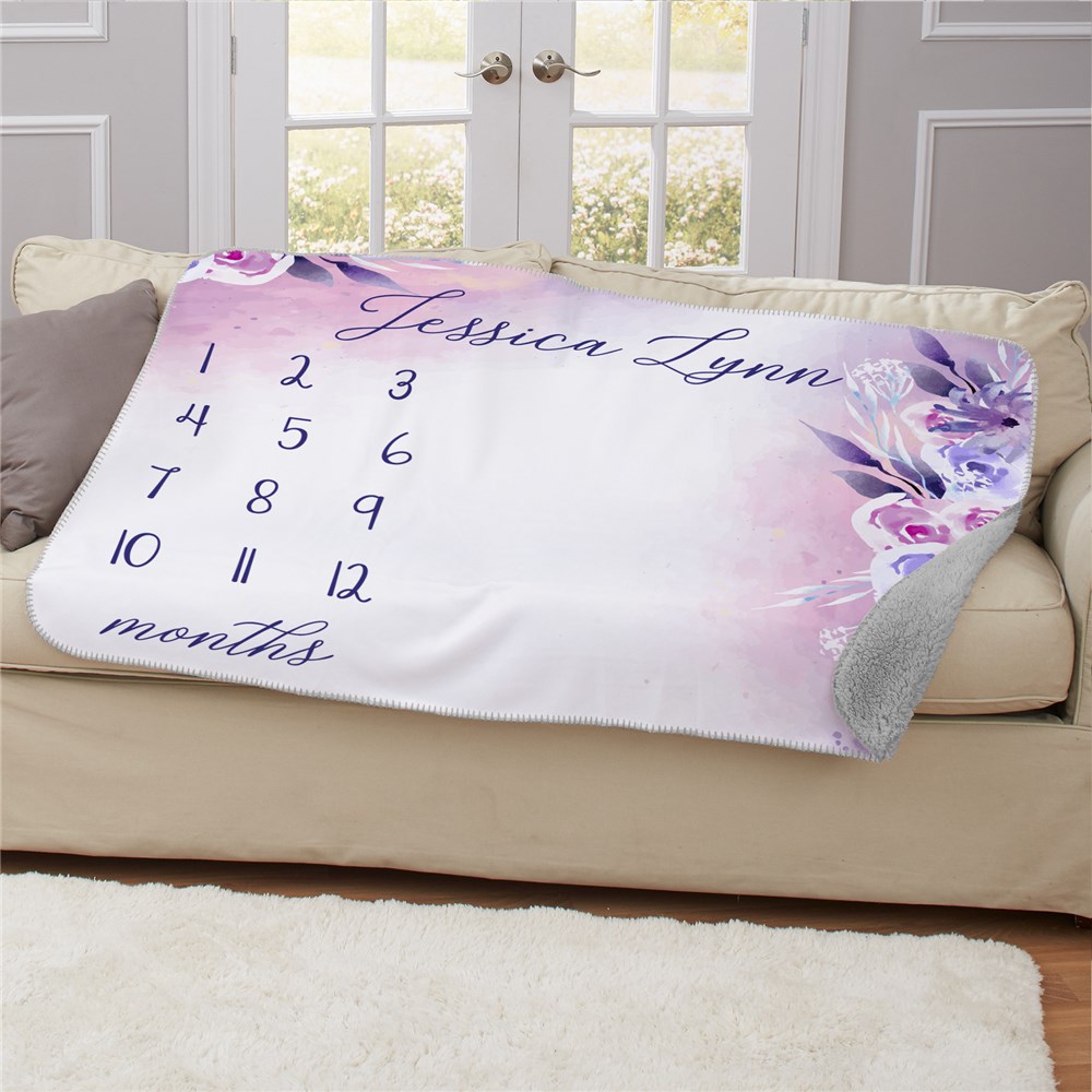 Capture all of your baby's precious milestones during their first year with our Personalized Floral Baby Monthly Milestone 50x60 Sherpa Blanket.