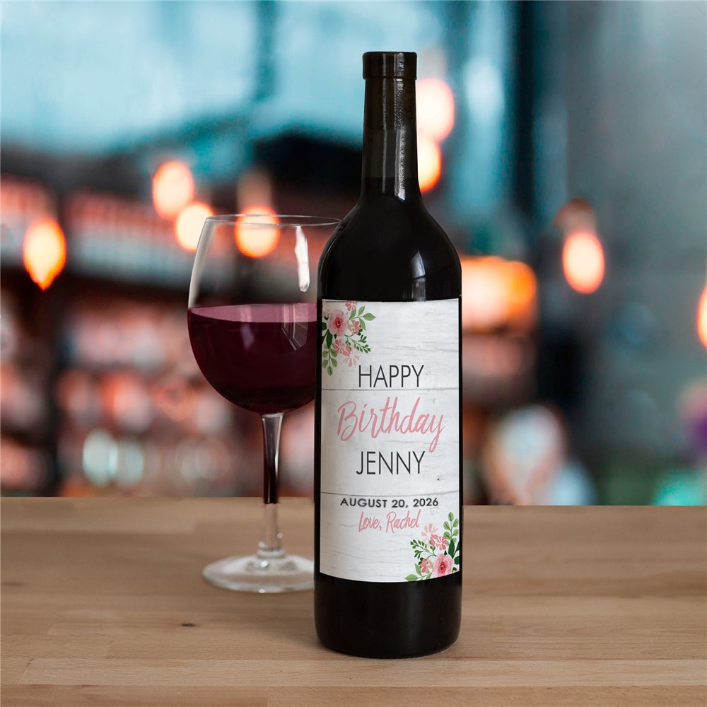 Personalized Floral Birthday Wine Bottle Labels